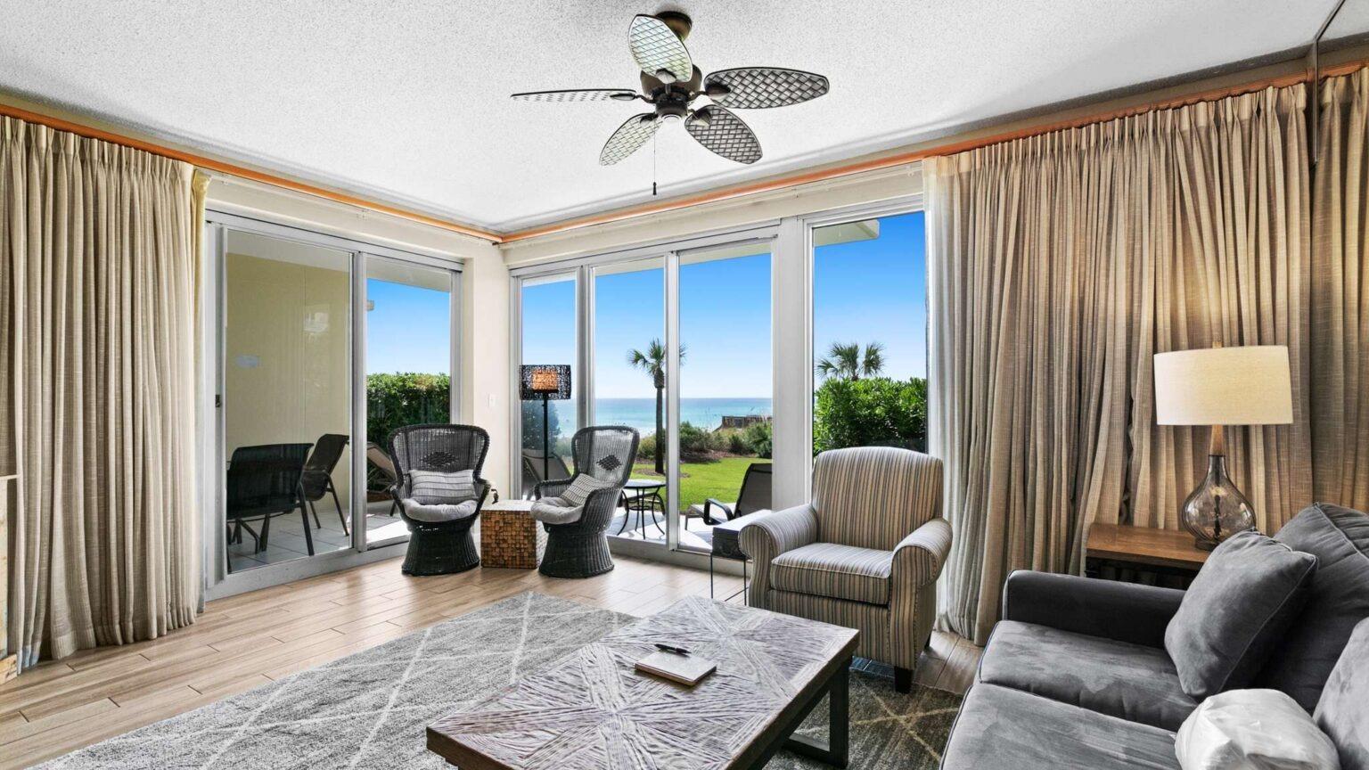 With balcony views overlooking SunDestin’s outdoor pool and the emerald waters of the Gulf, this one-bedroom lower-floor condo is just steps from all the property’s amenities.