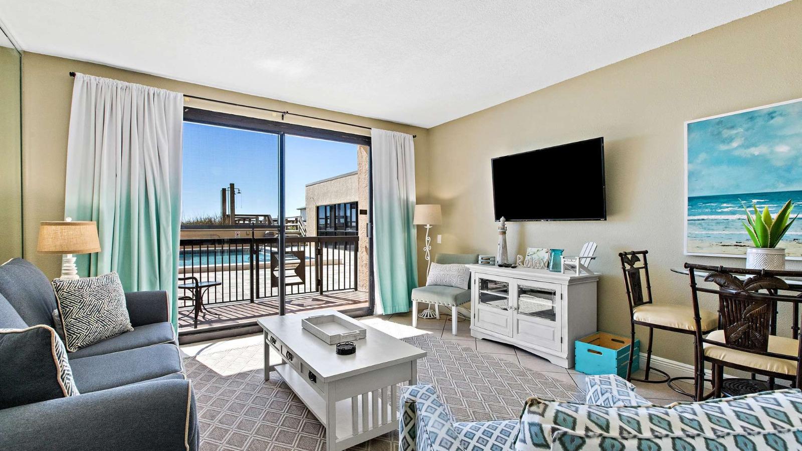 You’re just steps to the outdoor pool in this ground-floor condo! Just beyond the pool, you’ll find the sparkling sands of the Emerald Coast.